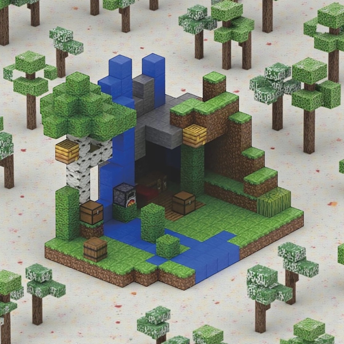 Klodser med realistiske Cubecraft inspirerede teksturer for autentisk udseende.