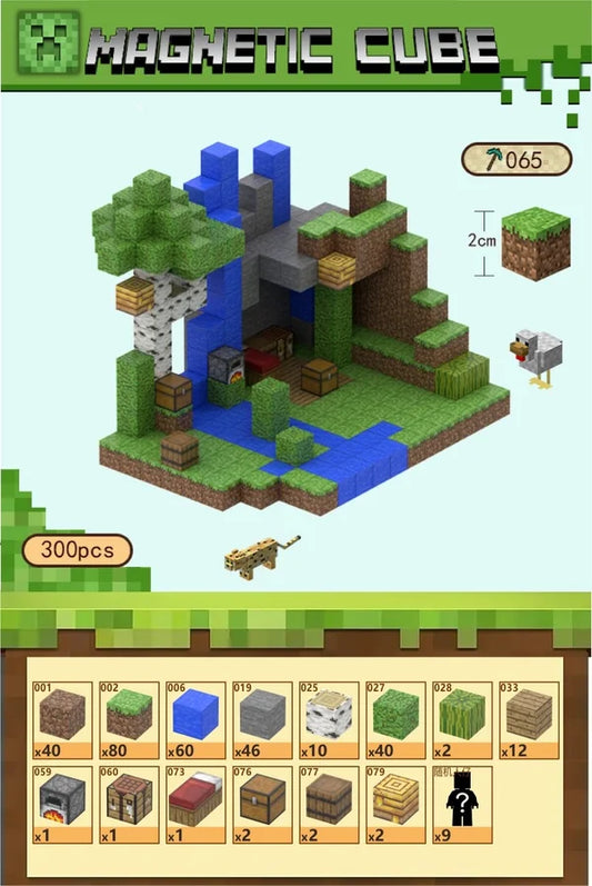 Byg din egen Minecraft inspirerede skov med et brusende vandfald, skjulte huler og små detaljer der bringer naturen til live i dette univers. Med hele 300 magnetiske byggeklodser kan du skabe din helt egen verden fyldt med træer, sten, vand og hemmelige gemmesteder. Skab en stemningsfuld skovscene med klipper, grotte og vandfald. Indret hulen med seng, ovn, kister og arbejdsbord. Perfekt til både børn over 3 år og voksne, der elsker at bygge, udforske og skabe nye eventyr i Cubecraft stil.