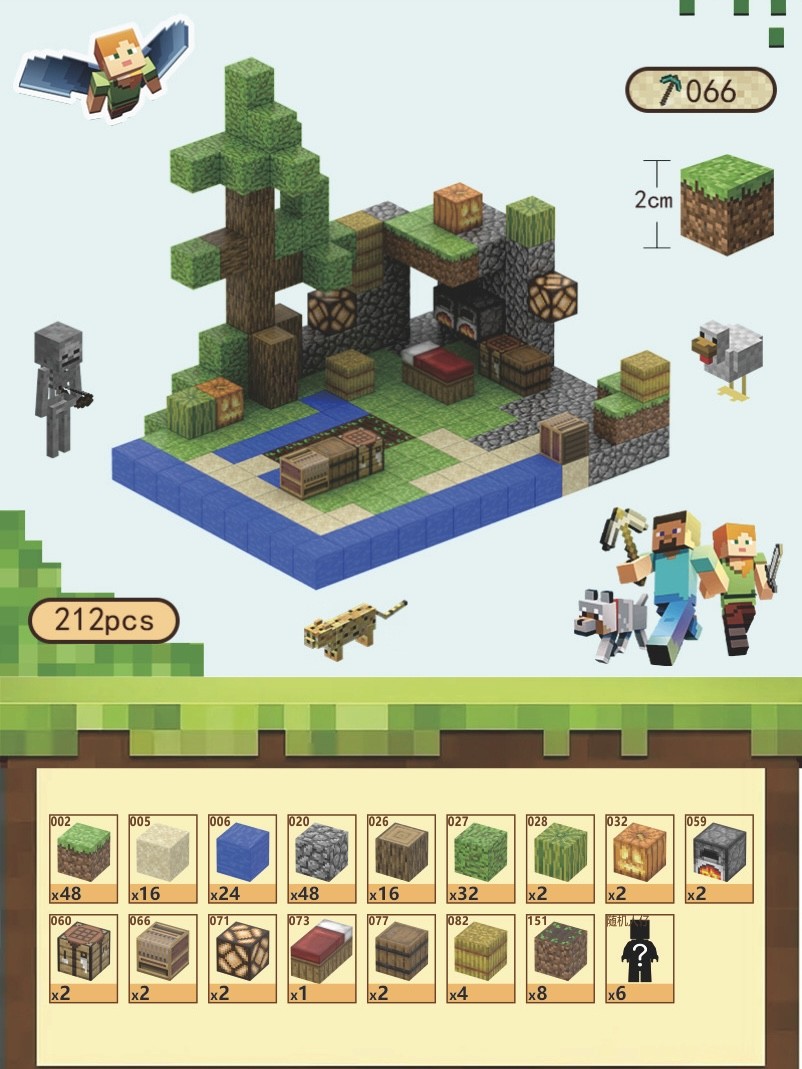 Cubecraft-klodser er magnetiske byggeklodser inspireret af Minecraft-universet. De er kvadratiske, måler 2 cm x 2 cm x 2 cm, og kan nemt sammensættes ved hjælp af magnetiske sider, hvilket giver uendelige muligheder for kreativ leg. Alle vores klodser er CE-godkendte for at sikre høj sikkerhed og kvalitet.